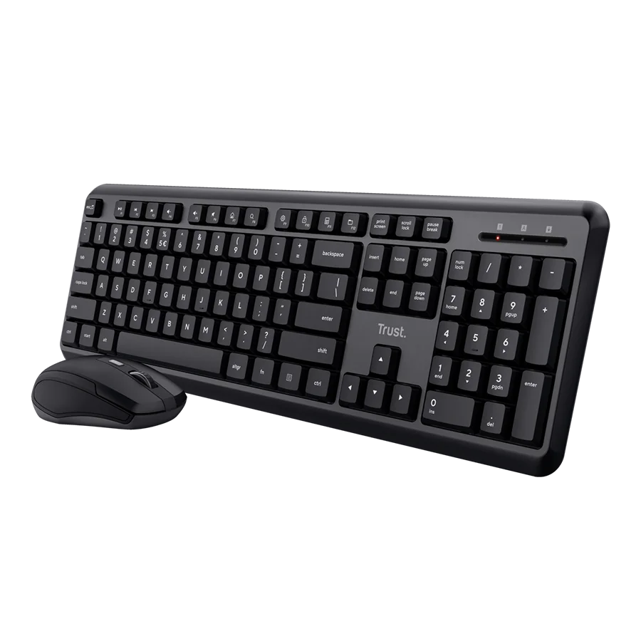 پک کیبورد و ماوس بی‌سیم Trust TKM-350 یک ست کاربردی و بی‌صدا است که با گیرنده USB مشترک کار می‌کند. کیبورد با کلیدهای کم‌صدا و میانبرهای کاربردی و ماوسی با دکمه تنظیم DPI و طراحی ارگونومیک، مناسب استفاده روزمره و محیط‌های اداری است. نصب آسان و سازگاری با سیستم‌عامل‌های مختلف از دیگر مزایای این پک است.